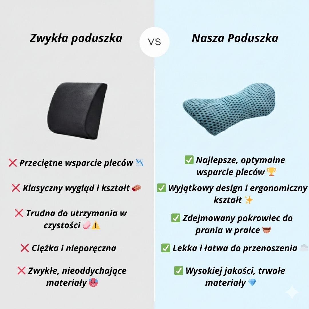Nasza poduszka lędźwiowa jest lepsza od zwykłych, ponieważ została zaprojektowana ergonomicznie, aby zapewnić optymalne podparcie pleców, zmniejszyć nacisk i poprawić postawę. Wykonana z wysokiej jakości pianki memory, idealnie dopasowuje się do kręgosłupa, zapewniając długotrwały komfort. Wytrzymała, oddychająca i stylowa – poczuj ulgę i wsparcie jak nigdy dotąd!